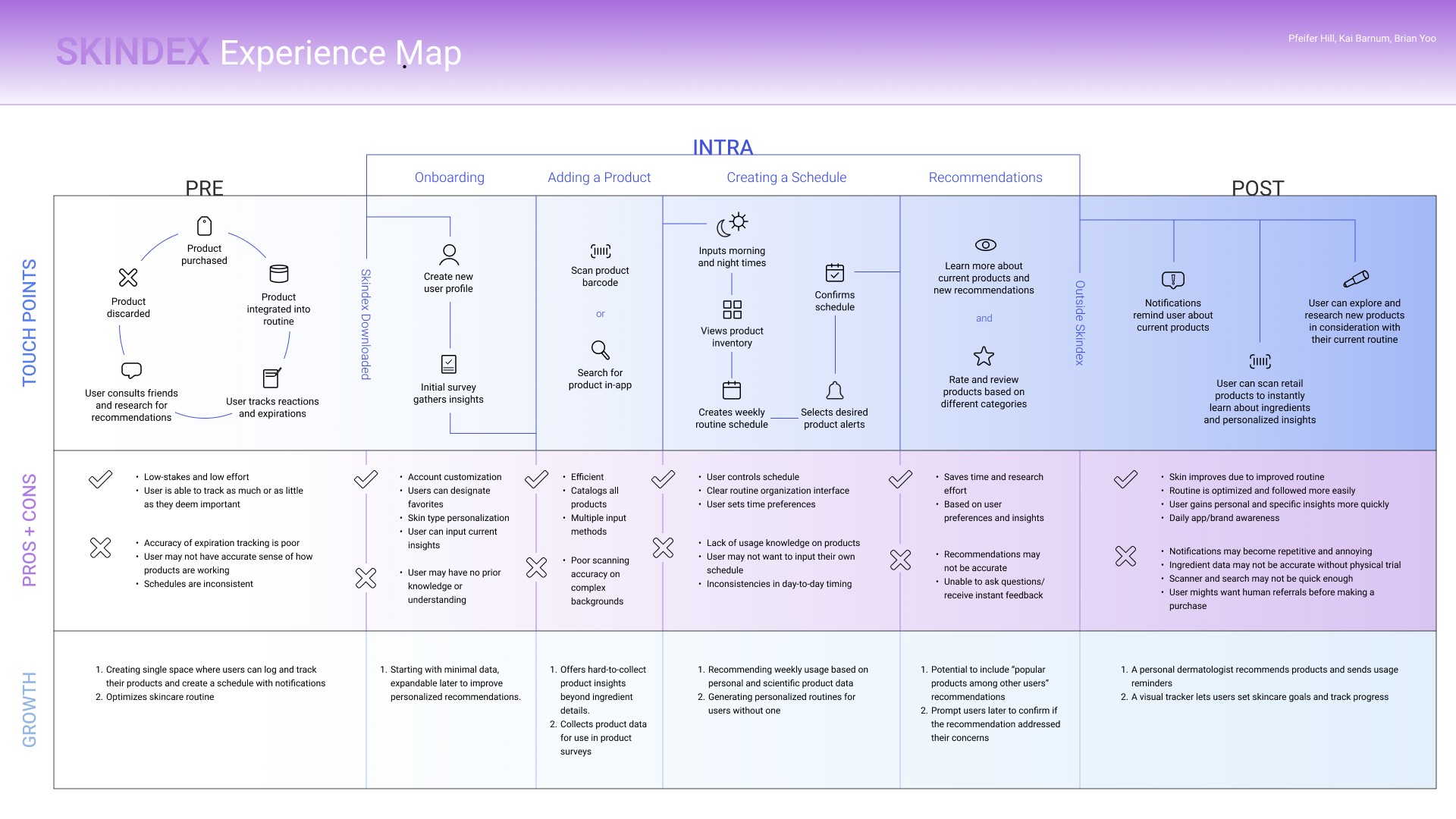 We visualized the process of how a user might use a skincare app like SkinSights. From pre-app use and onboarding to creating a skin routine schedule and receiving product recommendations.